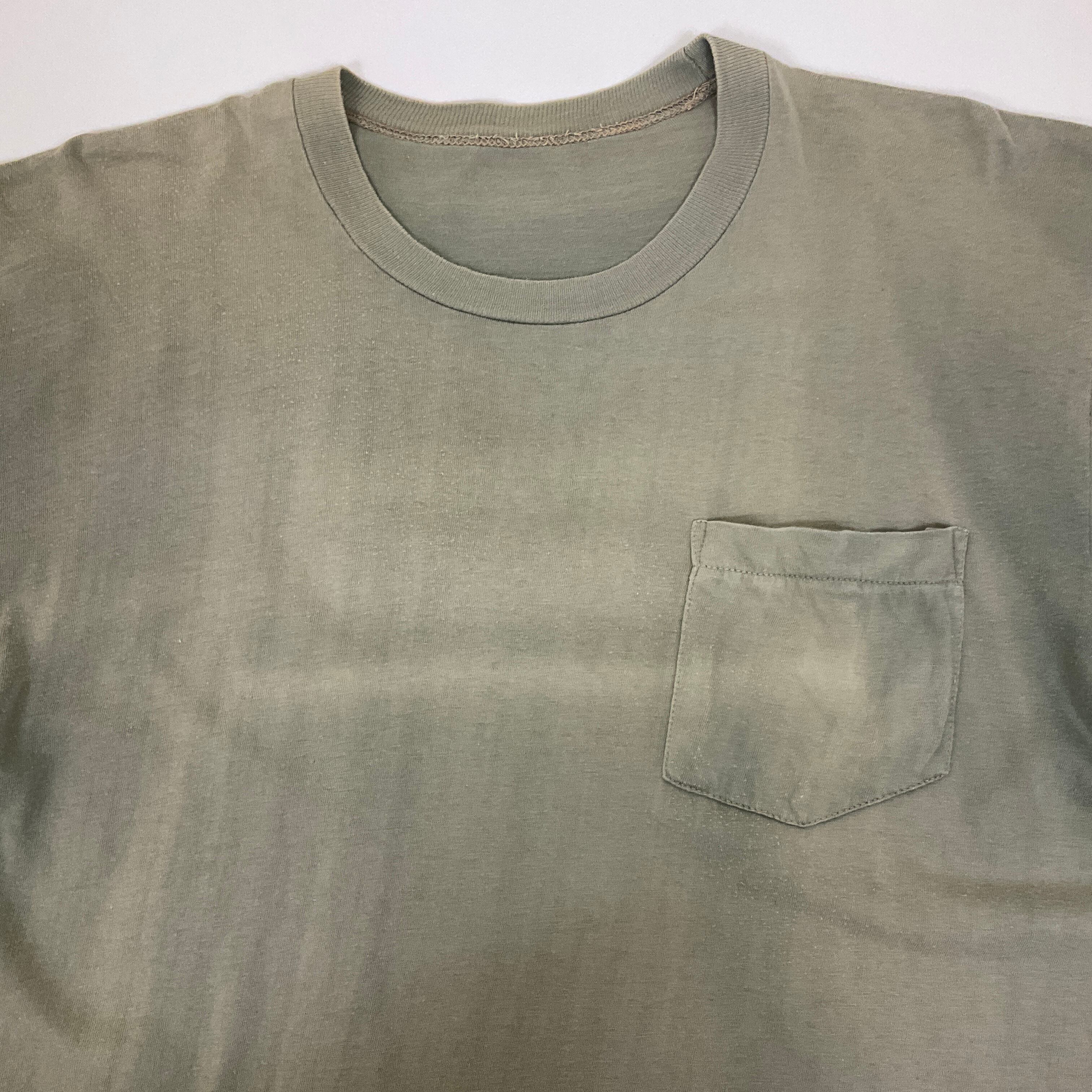 〜80年代 〜80s 無地 ブランク ポケット Tシャツ ポケT 古着 ヴィンテージ ビンテージ カーキグリーン 薄緑 メンズL相当 シングルステッチ 【f240619015】