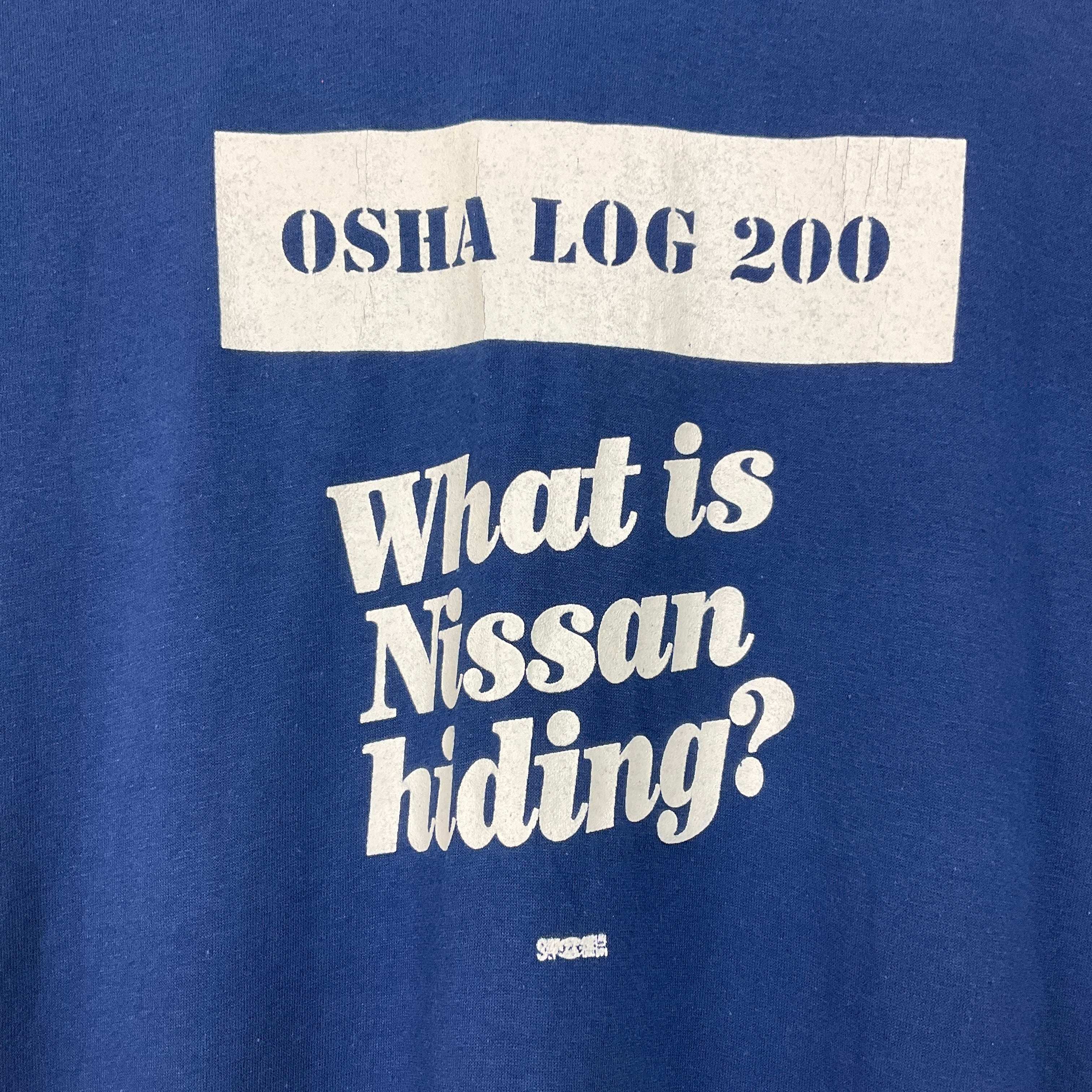 USA製 80年代 80s OSHA LOG 国際安全衛生センター メッセージ プリント Tシャツ 古着 メンズXL ネイビー 紺 ヴィンテージ ビンテージ シングルステッチ 両面プリント バックプリント【f240715006】