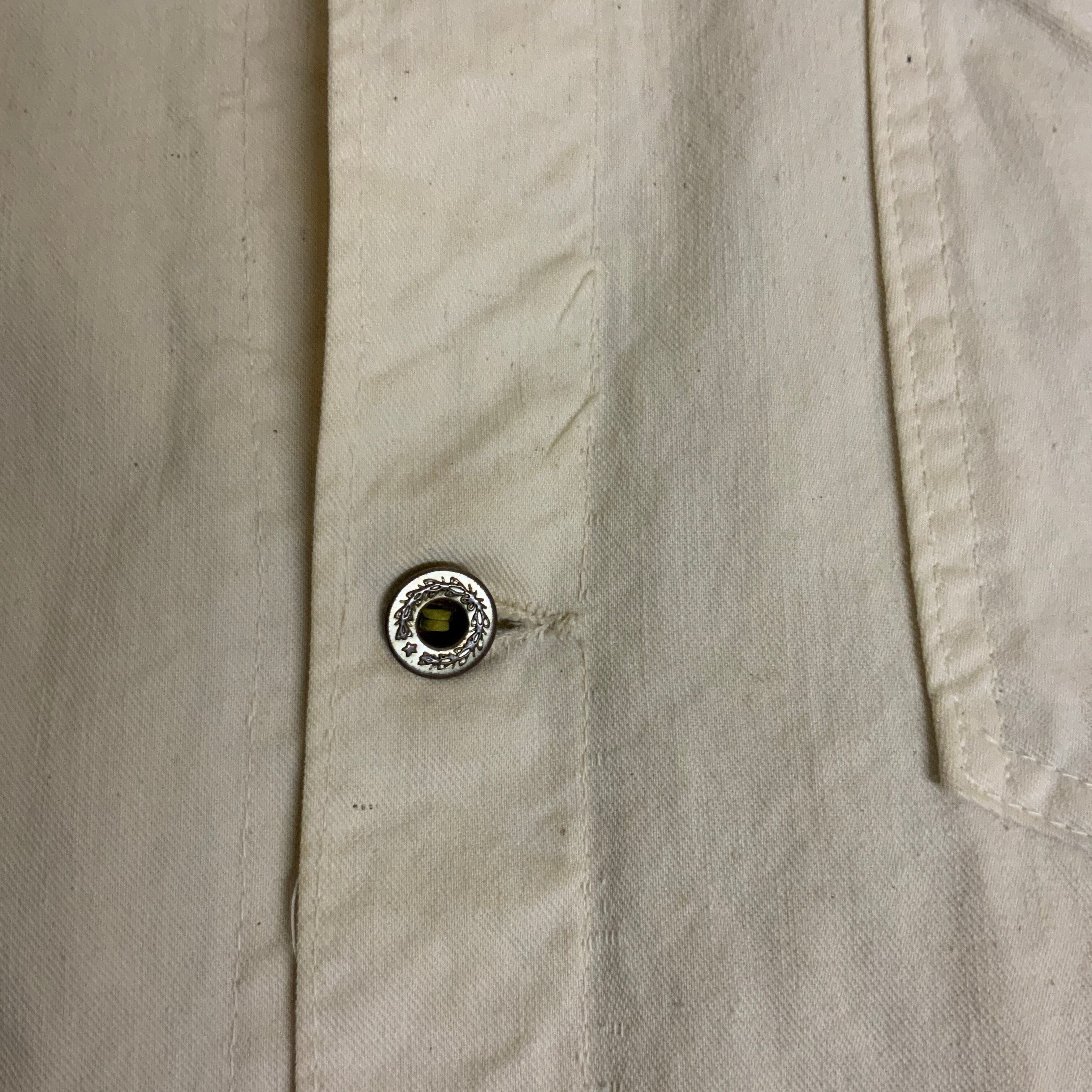30s40sビンテージ カバーオール 生成りチンスト30年代40年代月桂樹ドーナツボタン古着 f241015002