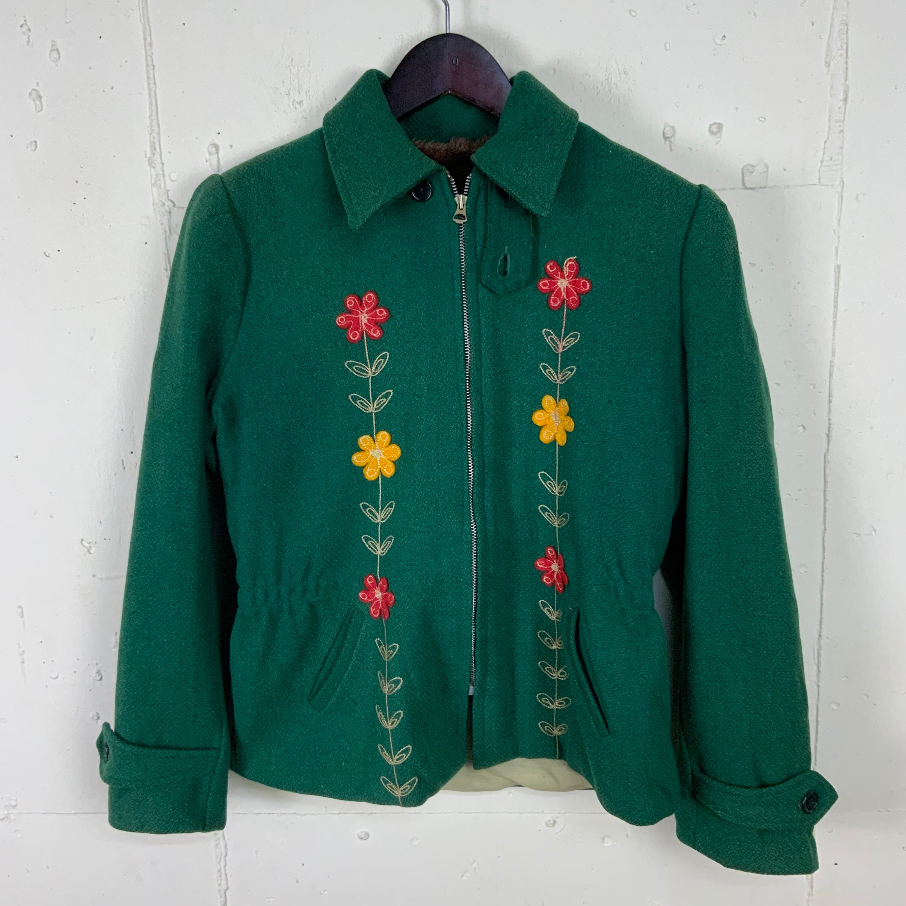 40s40年代ヴィンテージレディースウールジャケット花柄デコタロン古着 f241209003
