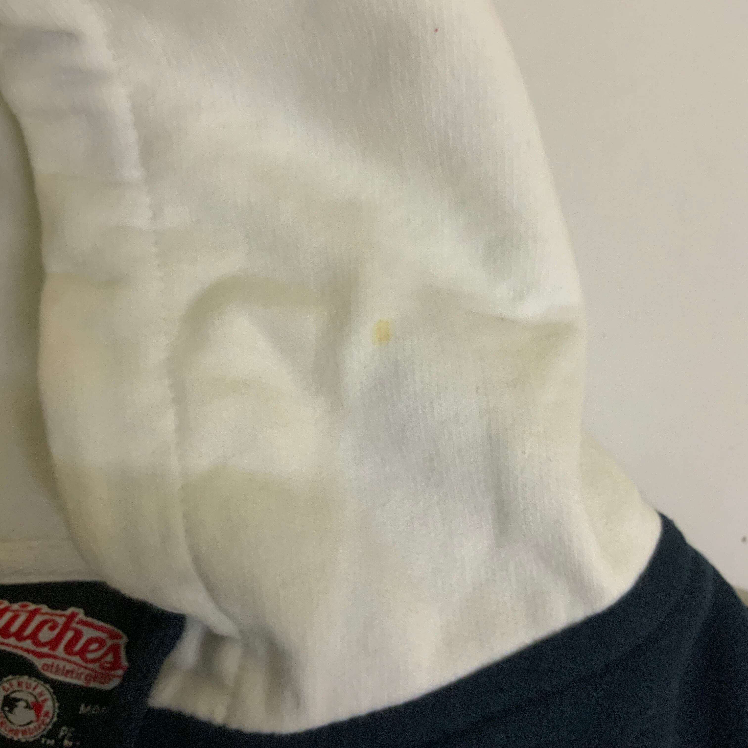 状態はおそらく水は通ってないと思いますが、所々小さな汚れやフードに多少の黄ばみがあります。ダメージとかはない状態です。