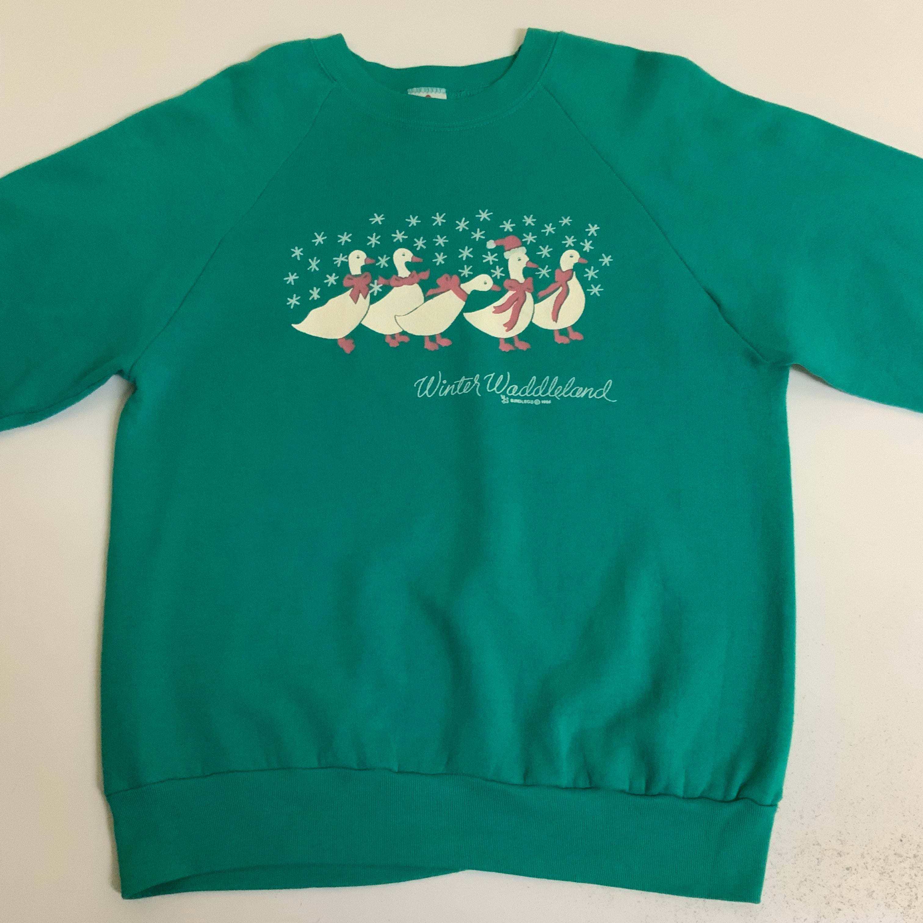 80s80年代アメリカ製USA製MILLERアニマル柄動物柄アヒルスウェットトレーナー古着 f250107003