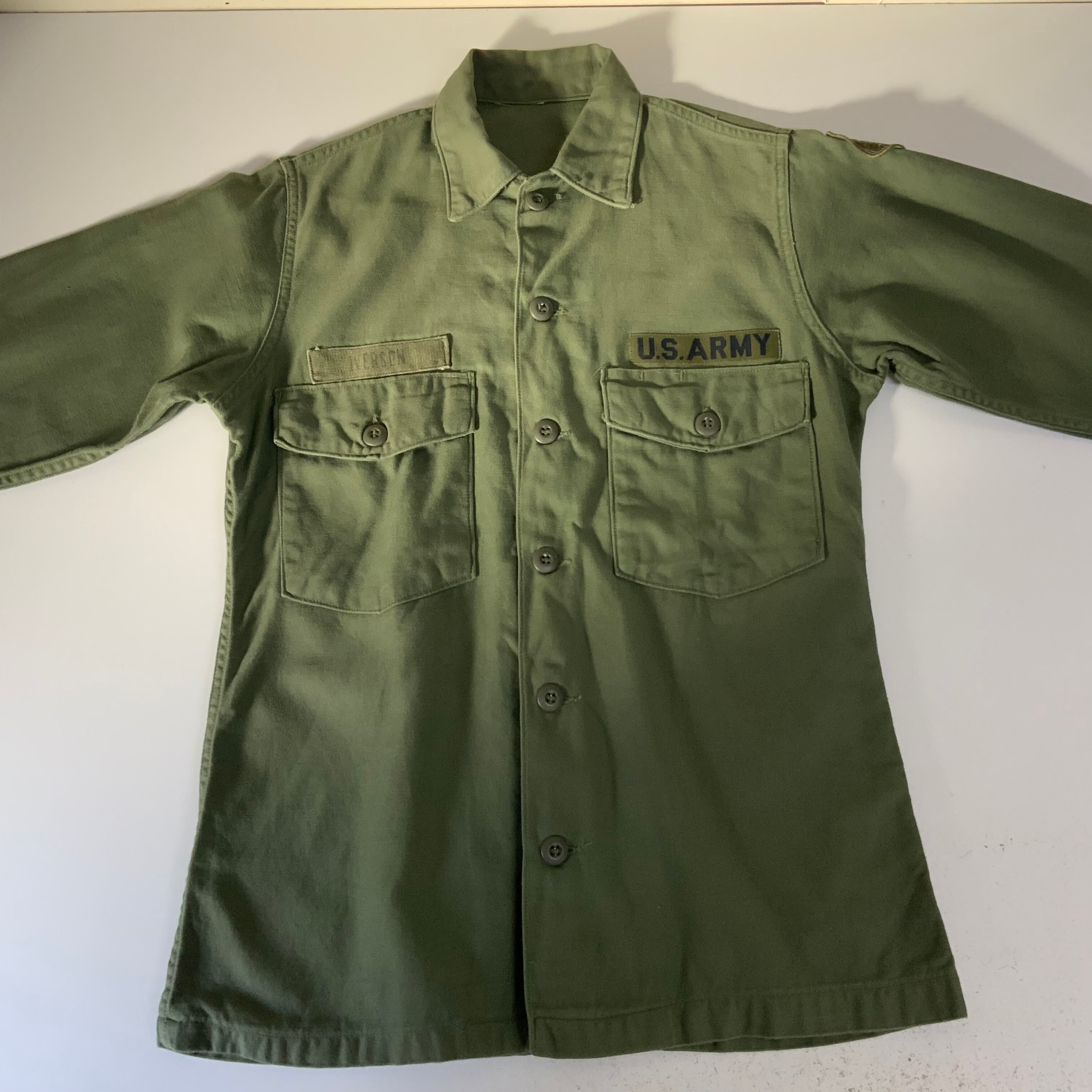 60s60年代米軍実物US ARMY OG107 COTTON SATEENユーティリティシャツ古着 f250129003