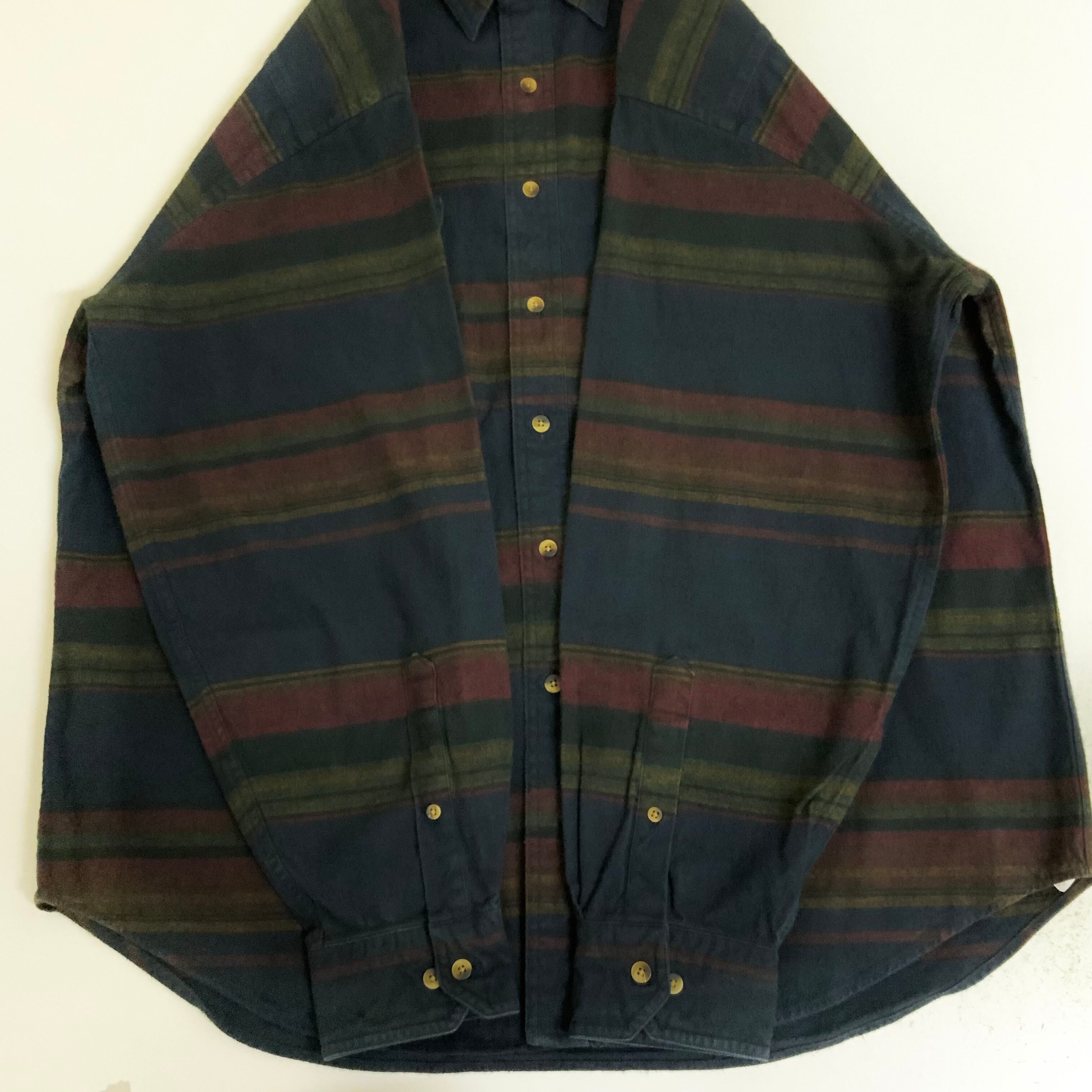 90s90年代LANDS’ENDランズエンドボーダー柄フランネルシャツネイティブメンズXL古着 f250207005